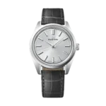 SBGW291 features a dynamic silver sunray dial. It has a silken shimmer, utilizing an intricate array of fine lines radiating from the dial’s center to create countless combinations of light and shadow. SBGW291 is paired with a gray crocodile leather strap.