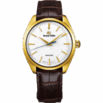 The pure and subtle design aesthetic of Grand Seiko is evident in every detail of SBGY002, as is the skill and care taken by the watchmakers at the Shinshu Watch Studio where the watch is made. The 18K yellow gold case is polished by a special Zaratsu method created to accentuate the beauty of the curved surfaces. In keeping with the case, the dial and the sapphire crystal are also curved to give the watch a classic look.