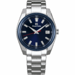 In honor of the 60th anniversary of Grand Seiko, SBGP015 debuts the new Caliber 9F85 in the Sport Collection. Measuring 40mm across, the stainless steel mid-case is fitted with a blue ceramic bezel, chosen due to it being nearly impervious to scratches. The dial, rendered in blue, features bold markers and hands coated with LumiBrite, ensuring excellent nighttime visibility. The new Caliber 9F85 is a robust quartz movement rated to +/-10 seconds a year, an incredible level of accuracy. It also has a function that allows the hour hand to be adjusted independently without stopping the seconds hand, which preserves its high precision and makes it a great traveling companion. SBGP015 has 20 bar water resistance, magnetic resistance of 16,000 A/m, and a screw-down crown for enhanced security, making this one tough package. It is a limited edition of 2,000 units.