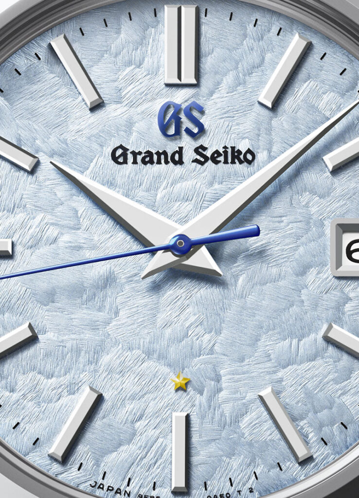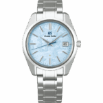 The stainless steel case of SBGP017 measures 40mm in diameter and 10.7mm in thickness, and it features Grand Seiko’s Zaratsu polishing for a beautiful distortion-free finish. The dial is adorned with Grand Seiko's acclaimed Iwao pattern—the light blue color here inspired by the sea of clouds that float around the mountains of Shinshu in the mornings.